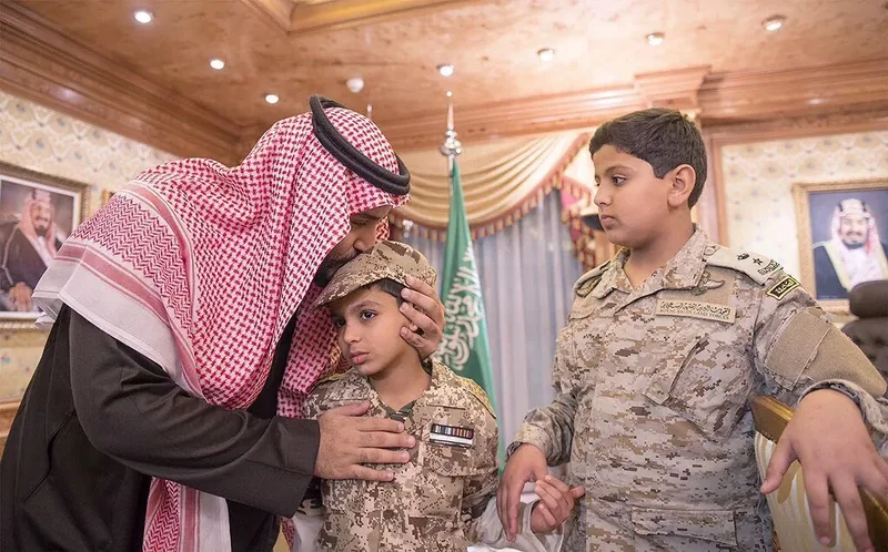 HRH the Deputy Crown Prince consoles the family of the martyr, Colonel Abdullah Al-Sahyan, praising his combat efficiency in achieving victories for legitimacy in Yemen.