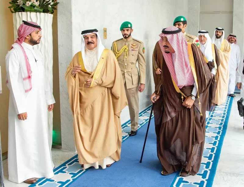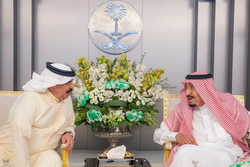 The Custodian of the Two Holy Mosques receives the King of Bahrain.