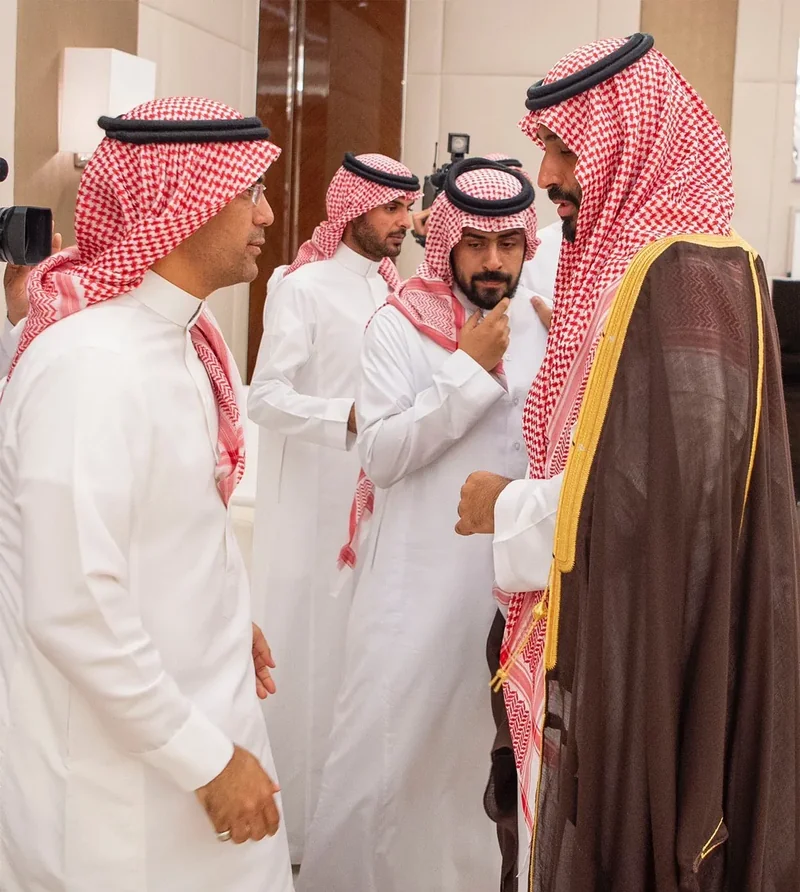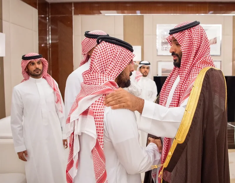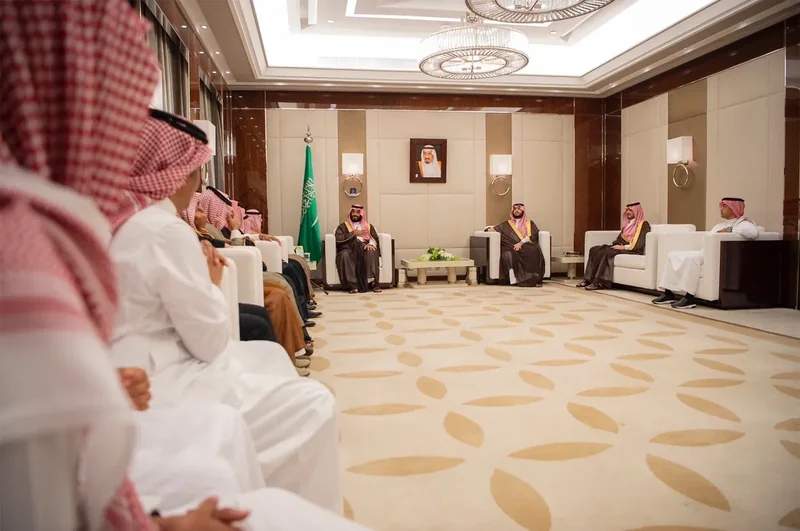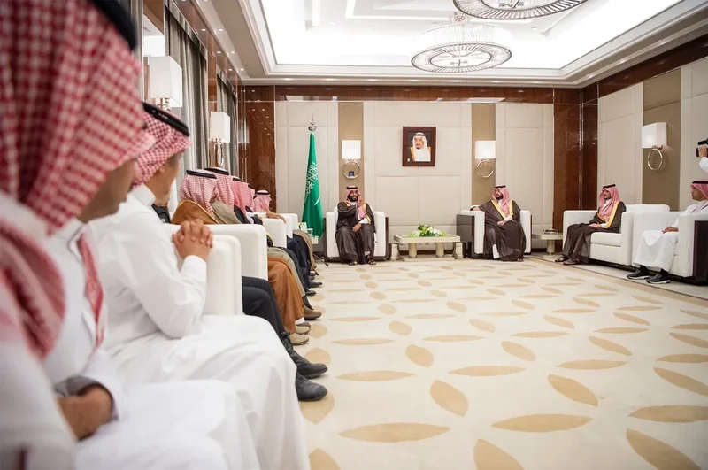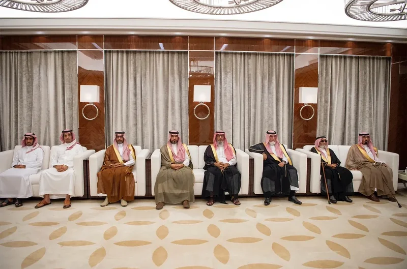 HRH the Crown Prince receives family and relatives of the martyr Major General Abdulaziz Al-Fagham , and expresses about sincere condolences of family and relatives of , HRH that passing of on everyone , in.