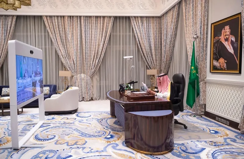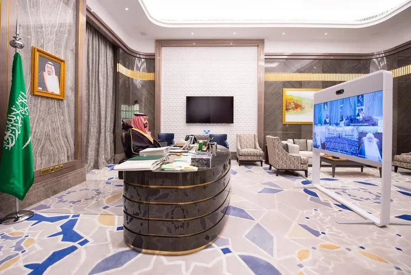 the Custodian of the Two Holy Mosques works first from session of council - via video call , in the presence of HRH the Crown Prince.