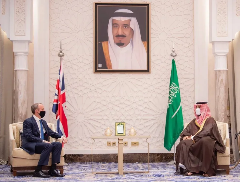 HRH the Crown Prince with minister Britain relations bilateral and aspects cooperation joint in various fields developments events in Middle and efforts being made regarding it including enhances security and stability in it.