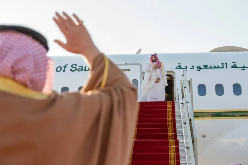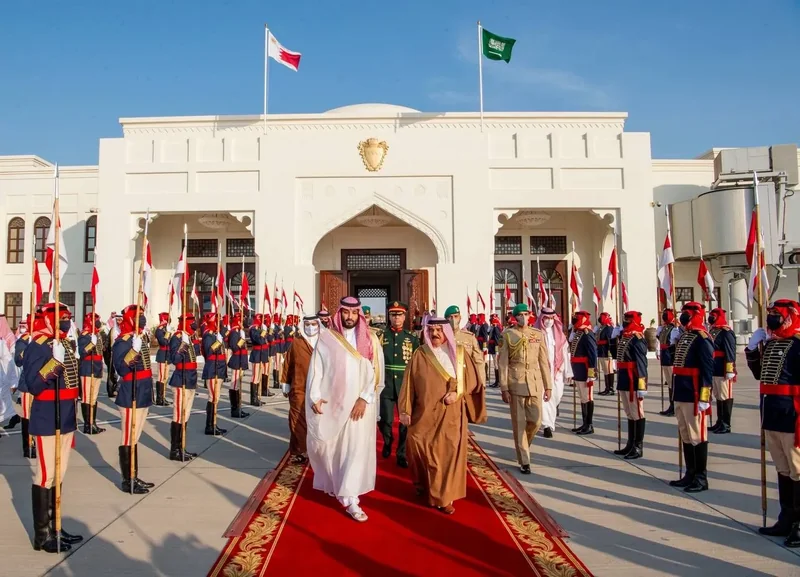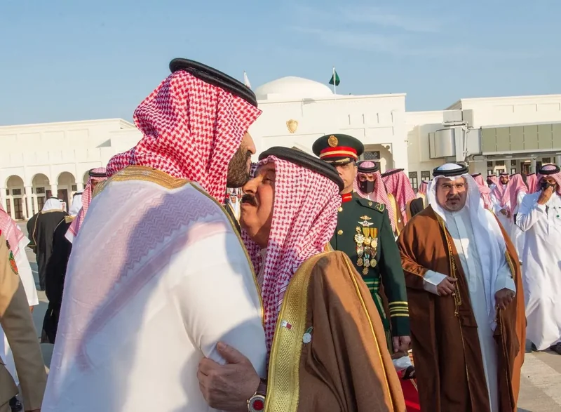 HRH the Crown Prince departs Bahrain and in forefront those bidding him farewell His Majesty the King of Bahrain.