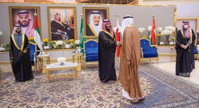 HRH the Crown Prince at the forefront of those receiving HRH the Prime Minister the Cabinet in at his arrival the capital Riyadh.
