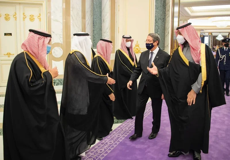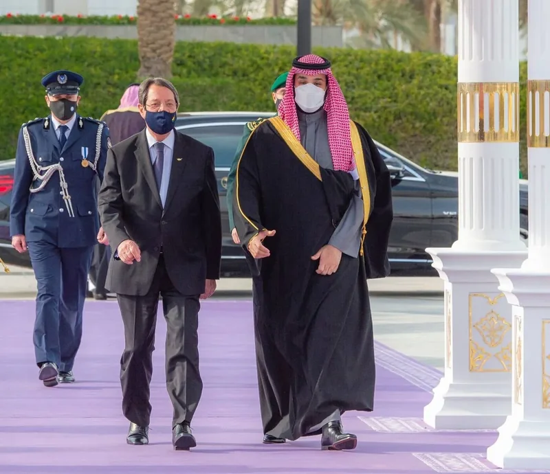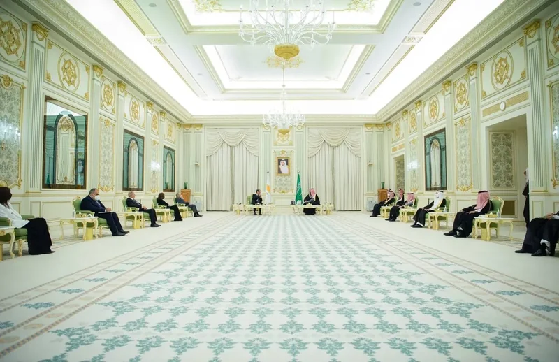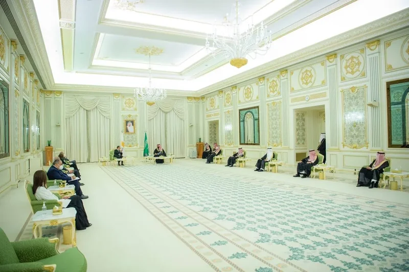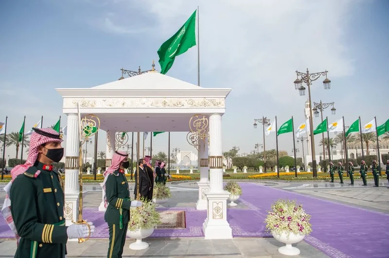 HRH the Crown Prince receives at the Royal Court Al-Yamamah Palace H.E. the President of and was held ceremony reception official.