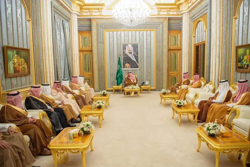 The Custodian of the Two Holy Mosques receives HRH princes of regions on the occasion of their meeting annual and Twenty (G20).
