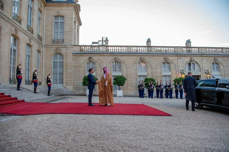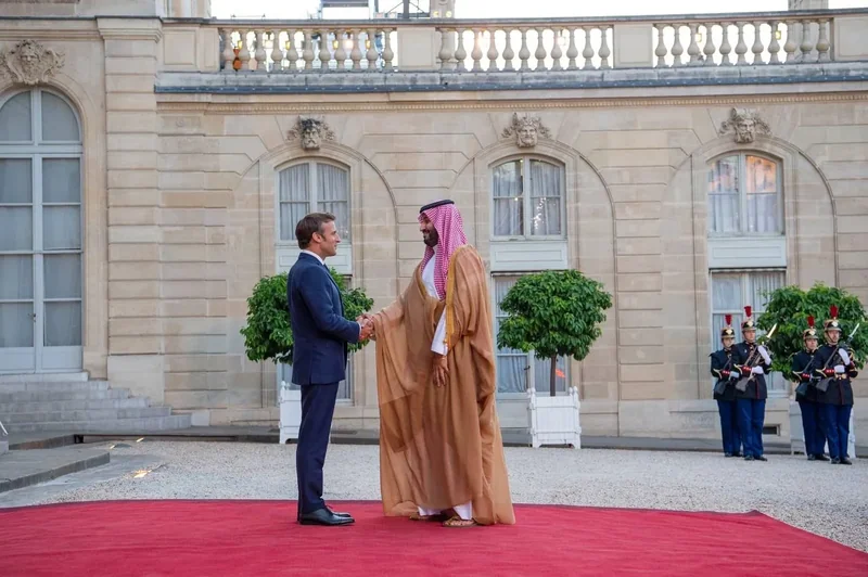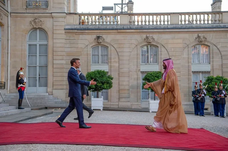 HRH the Crown Prince meets with H.E. the President French in palace in the capital Paris.