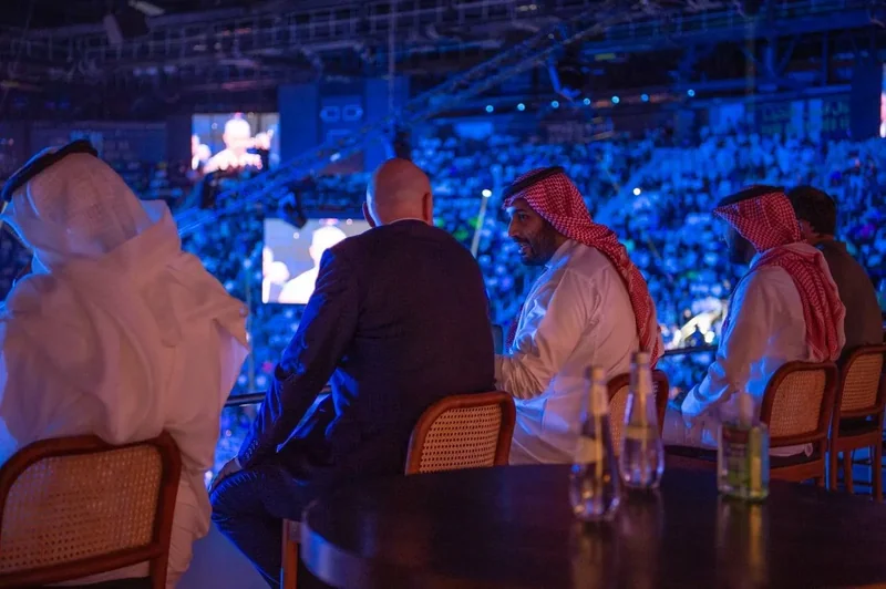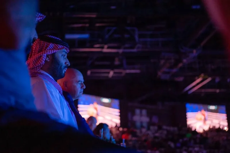 HRH the Crown Prince Prince Mohammed bin Salman attends historic in boxing between British Joshua and his opponent.