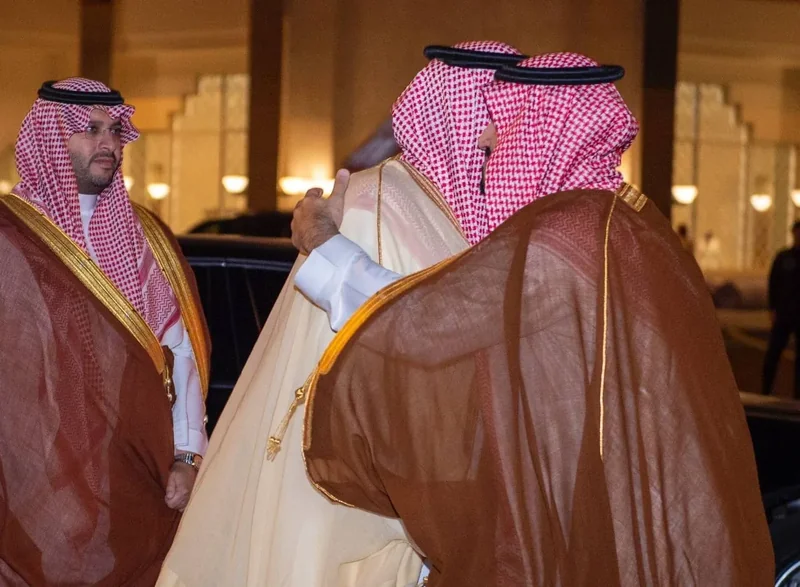 HRH the Crown Prince departs Madinah Al-Munawwarah and in forefront those bidding him farewell HRH the Emir of Madinah Al-Munawwarah and HRH.