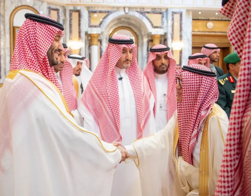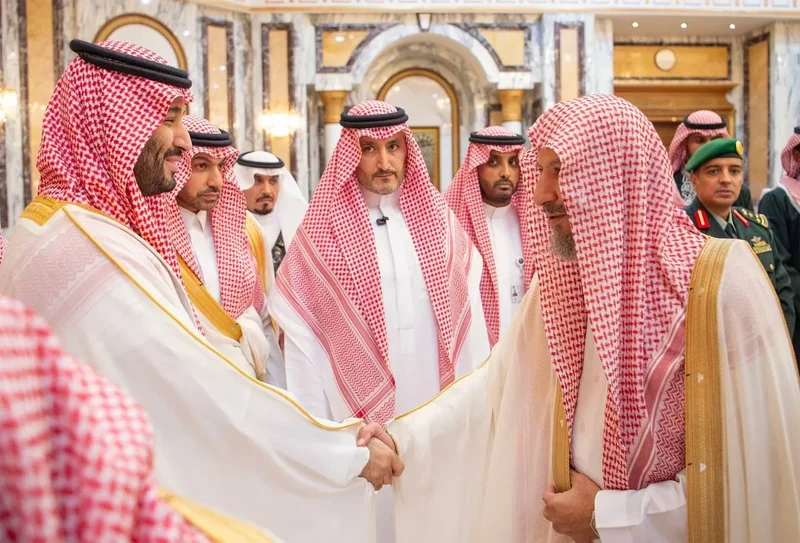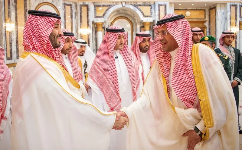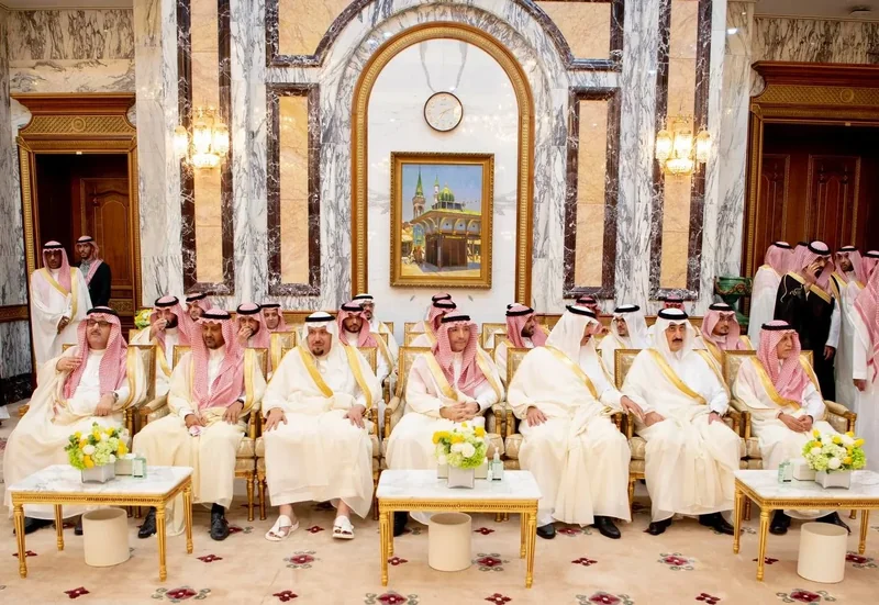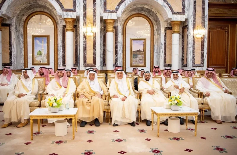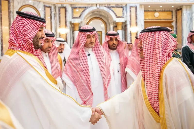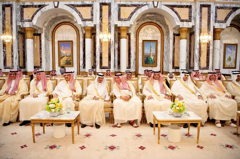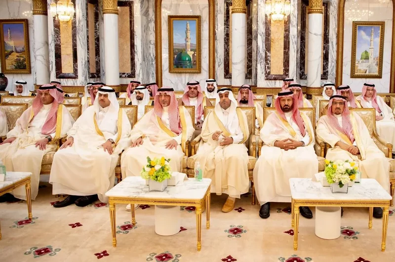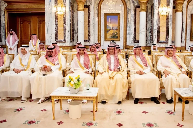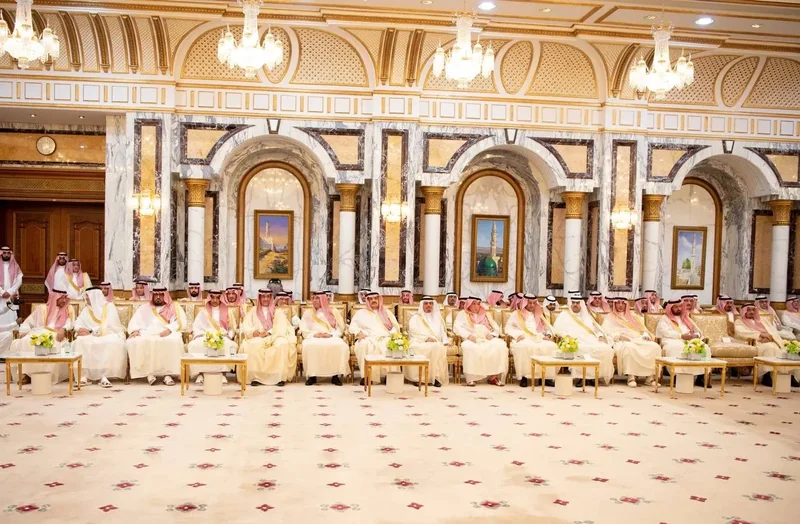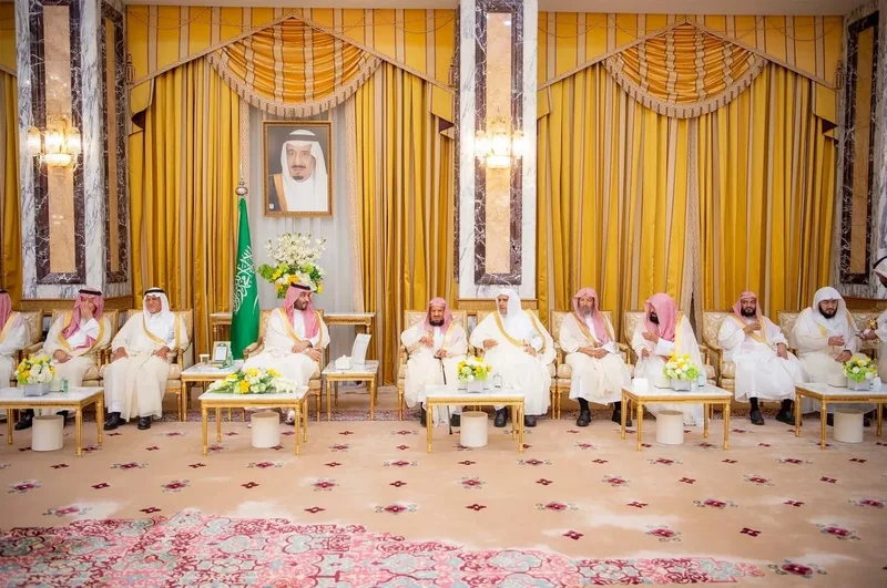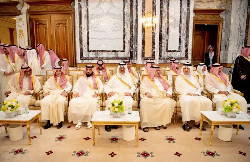 HRH the Crown Prince receives HRH princes Eminence scholars and sheikhs and Excellency , and senior from , who HRH in Eid Al-Fitr.