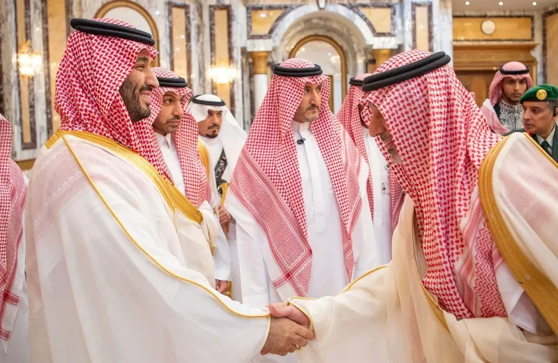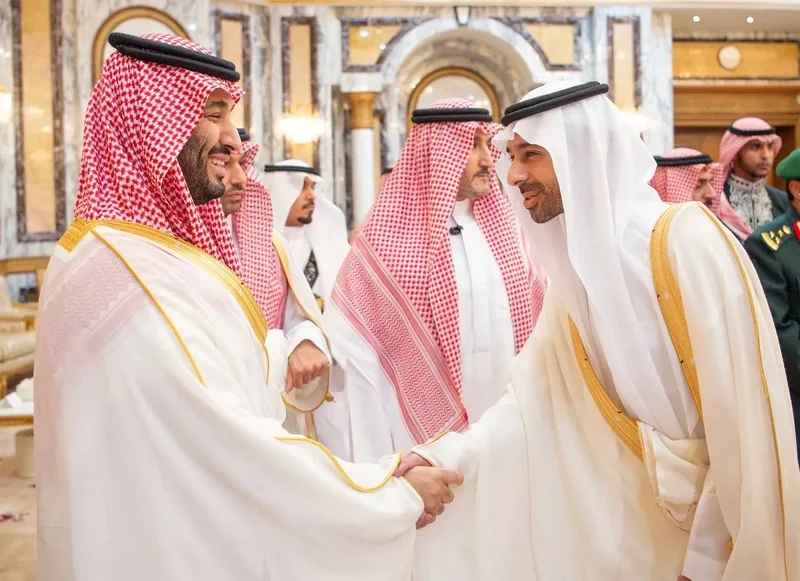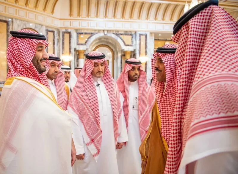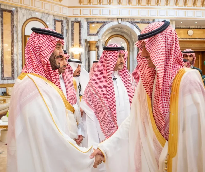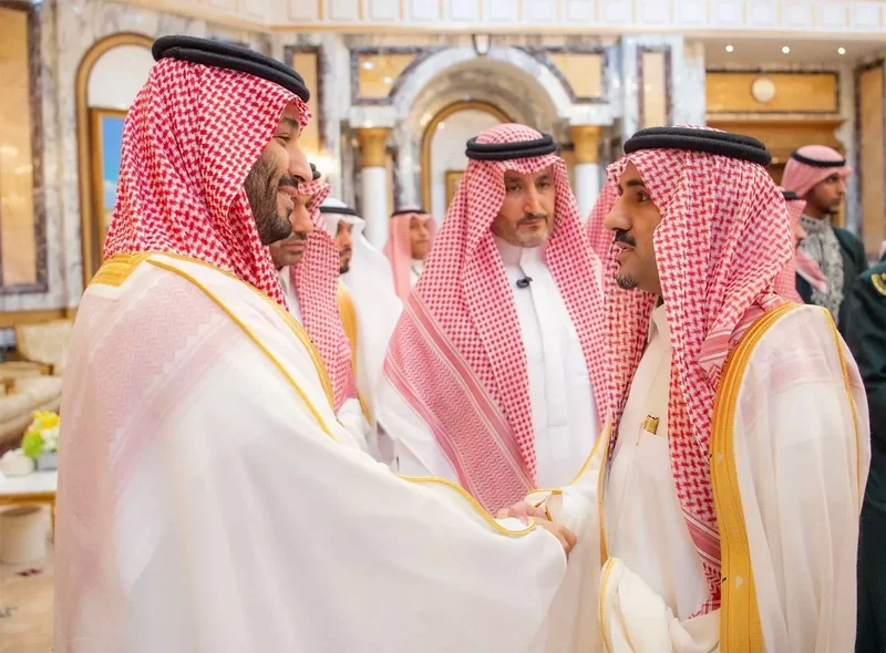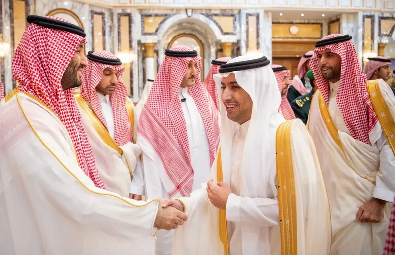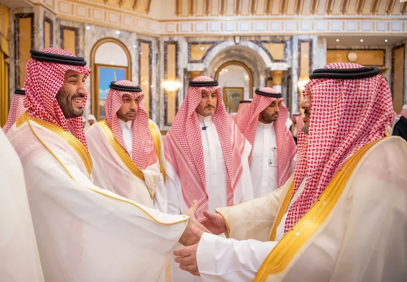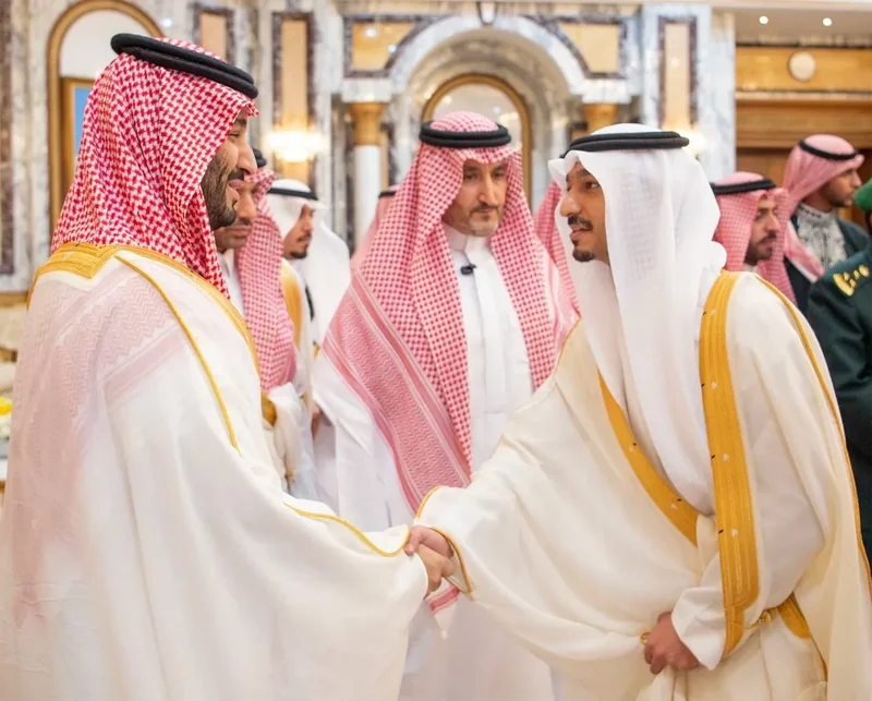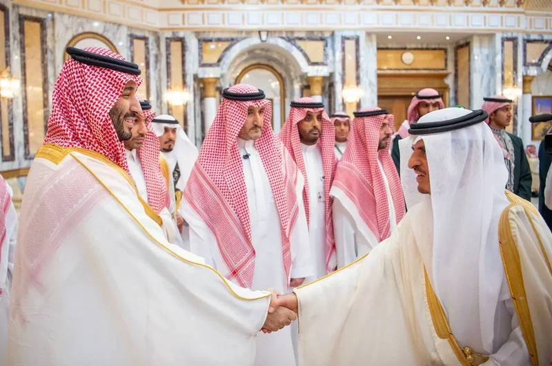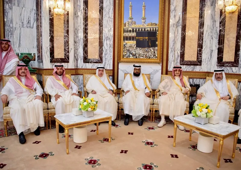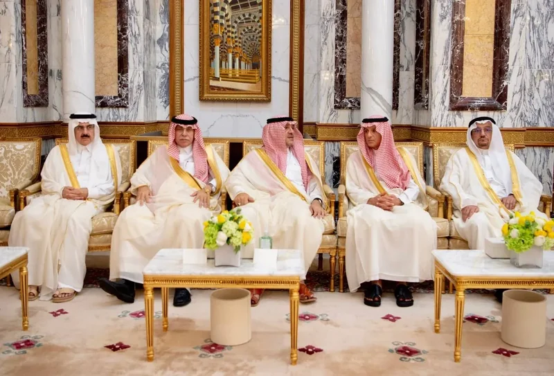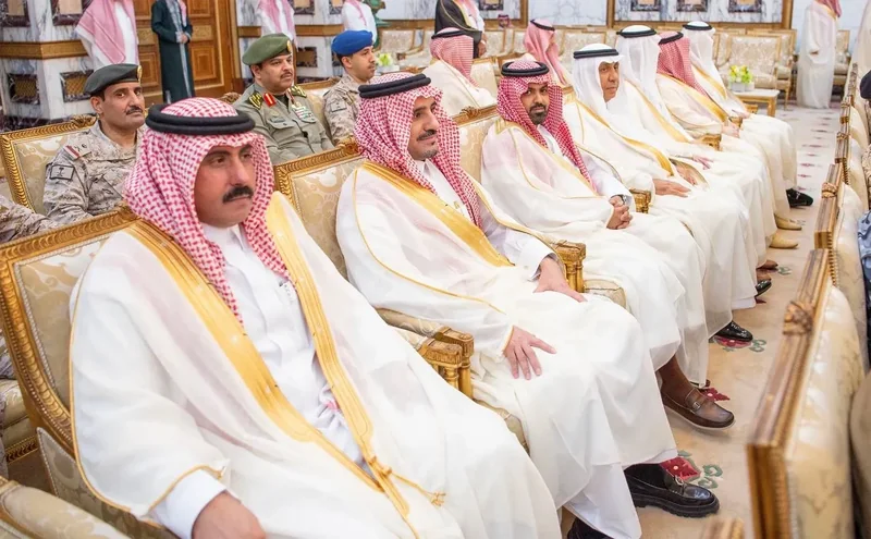 HRH the Crown Prince receives HRH princes Eminence scholars and sheikhs and Excellency , and senior from , who HRH in Eid Al-Fitr.
