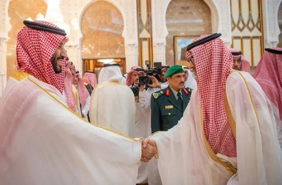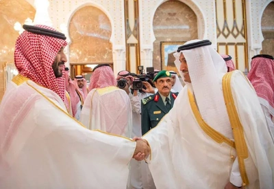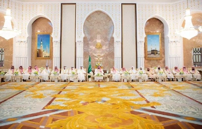 On behalf of His Majesty - HRH the Crown Prince receives at the Royal Court in palace - from HRH princes.
