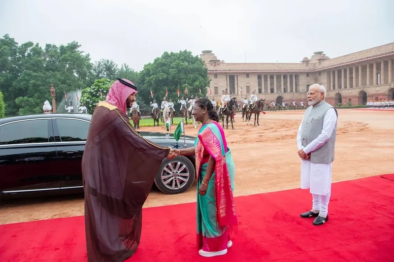 HRH the Crown Prince meets with the President of India in in , and was held HRH ceremony reception official in the presence of the Prime Minister of India.