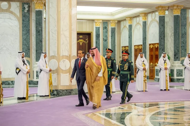 HRH the Crown Prince receives at Al-Yamamah Palace in Riyadh , H.E. the President of Indonesia , and holds an official reception.