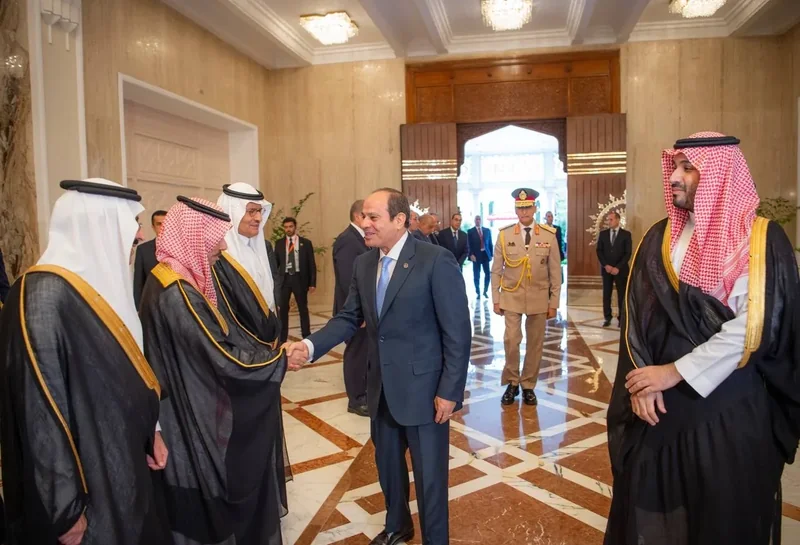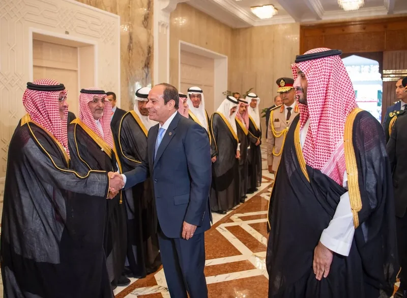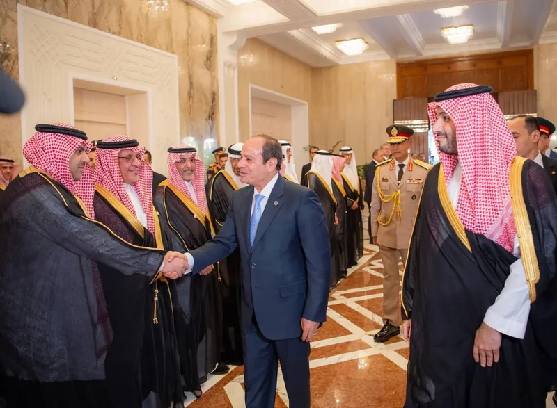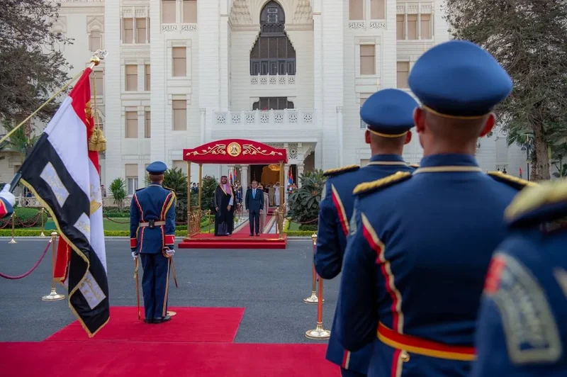 HRH the Crown Prince , arrives the President of Egypt Arab of palace , where HRH ceremony reception official.