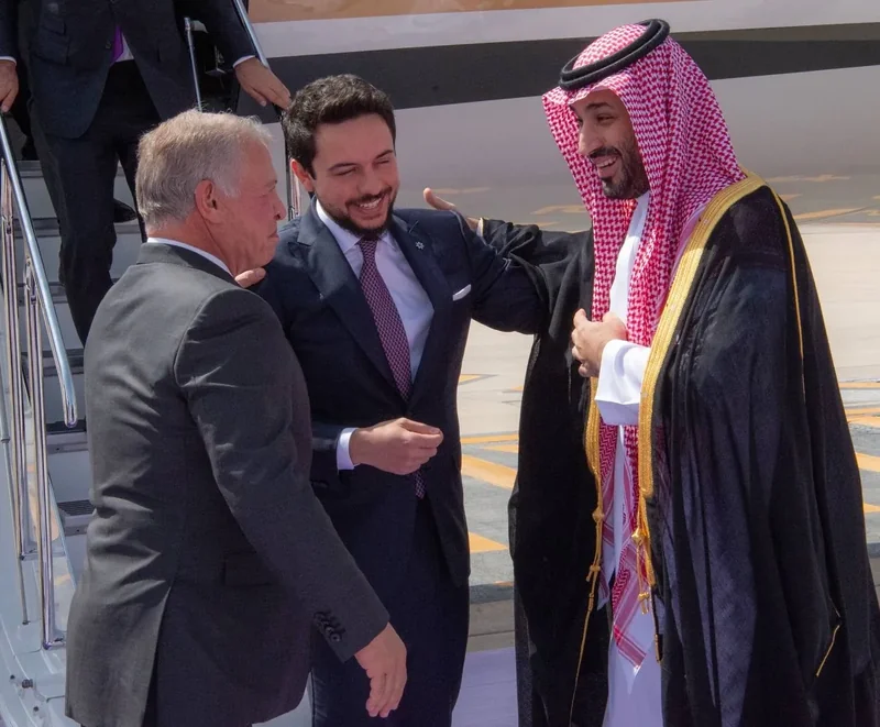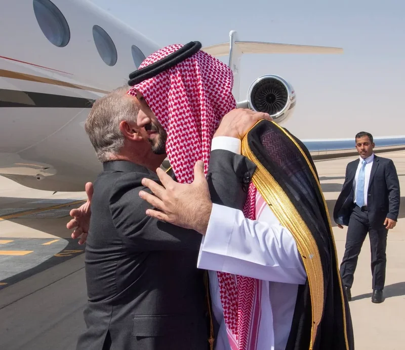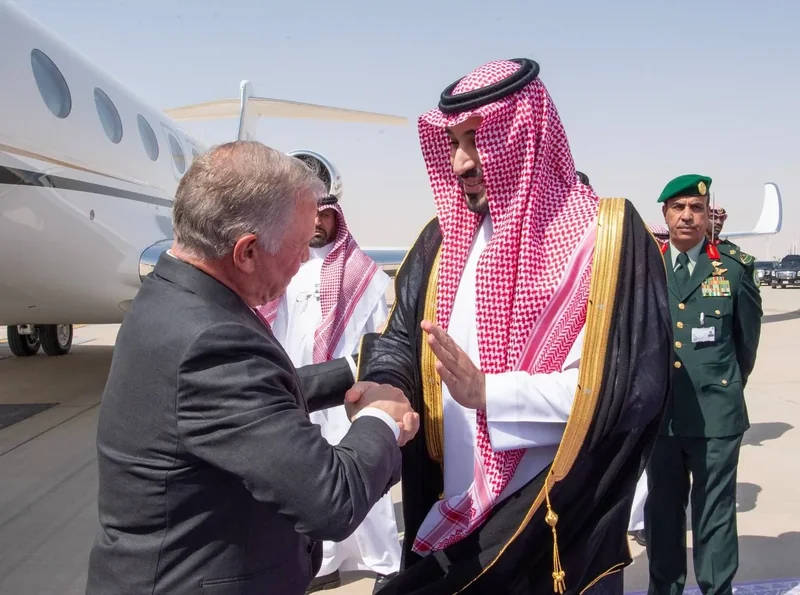His Majesty the King of Jordan arrives Riyadh and in his reception HRH the Crown Prince.