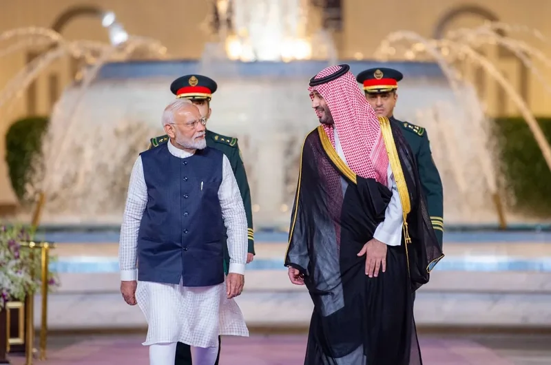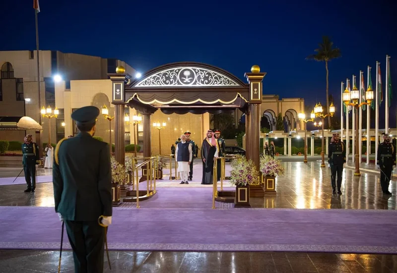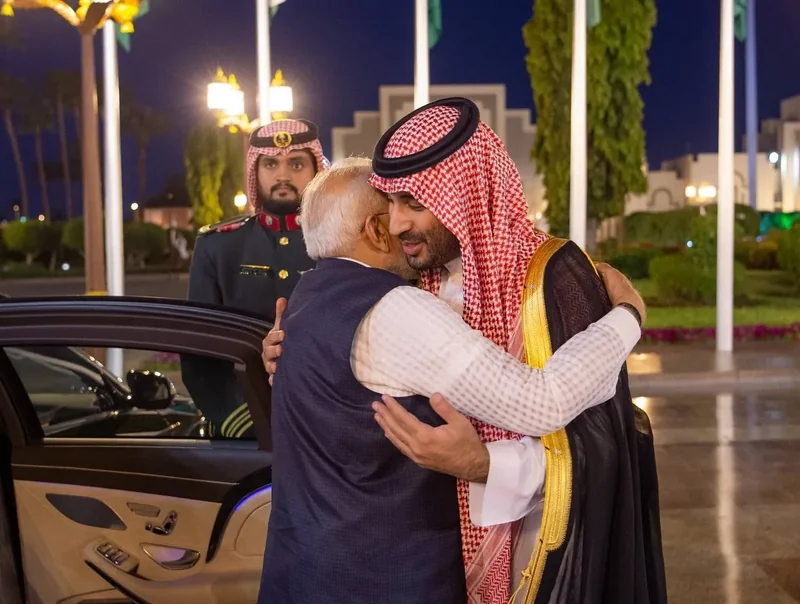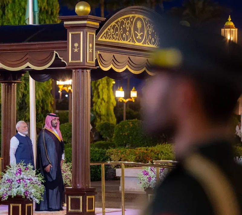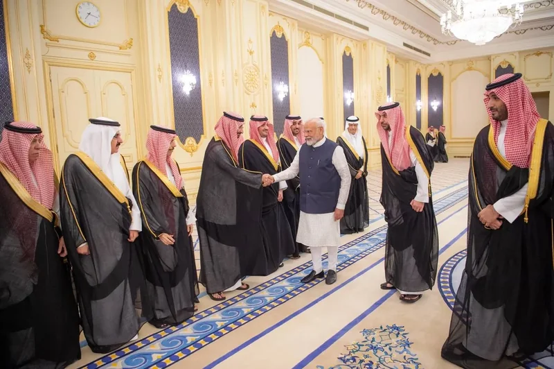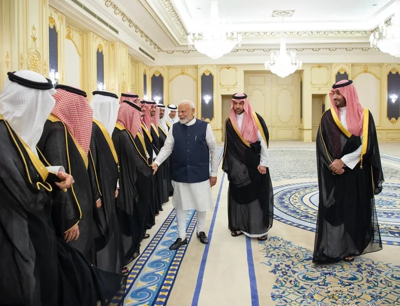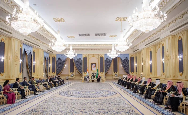 HRH the Crown Prince receives at the Royal Court Al-Salam Palace in Jeddah H.E. the Prime Minister of India , and an official reception was held.