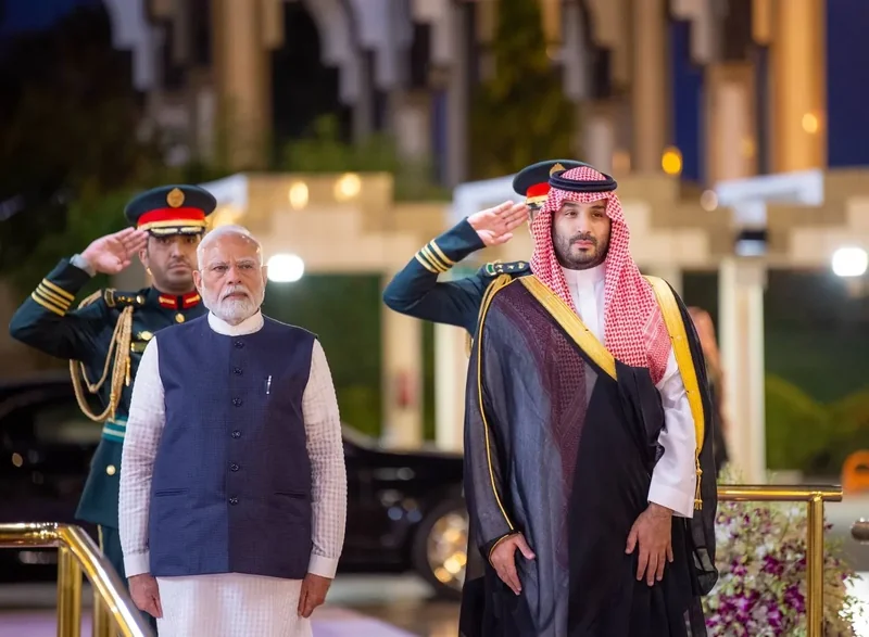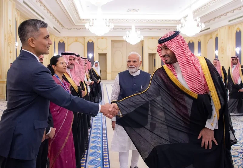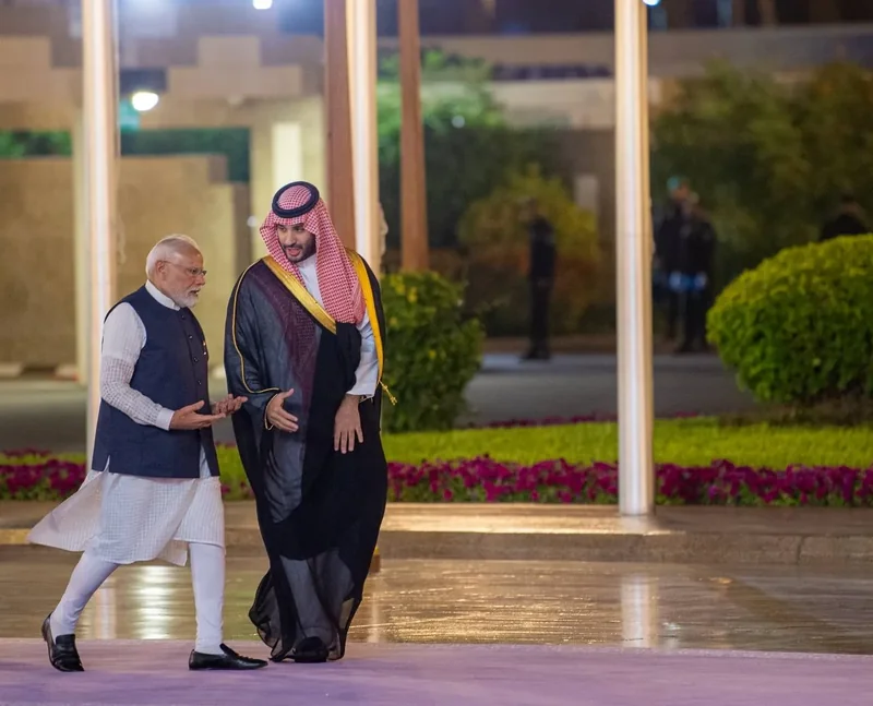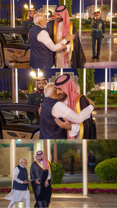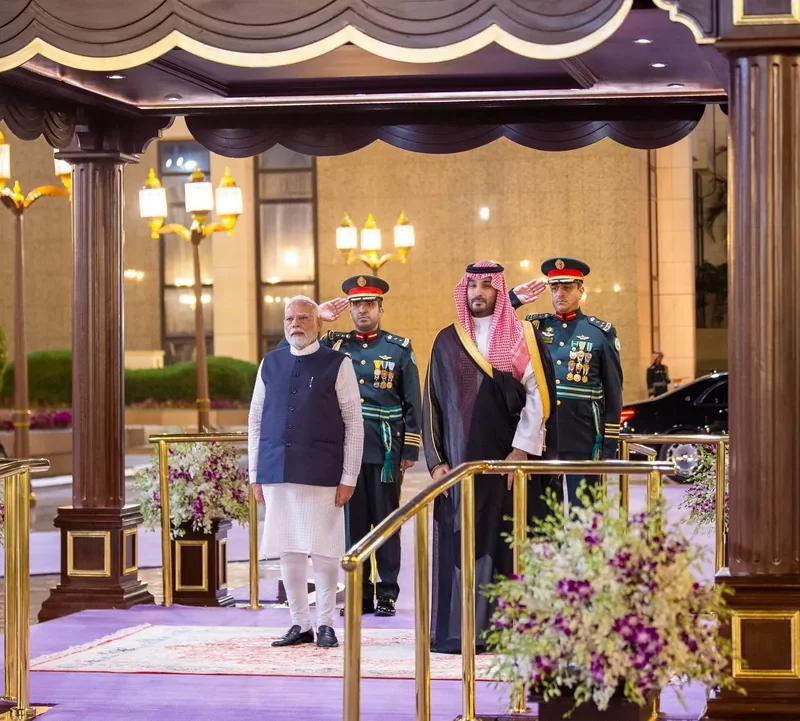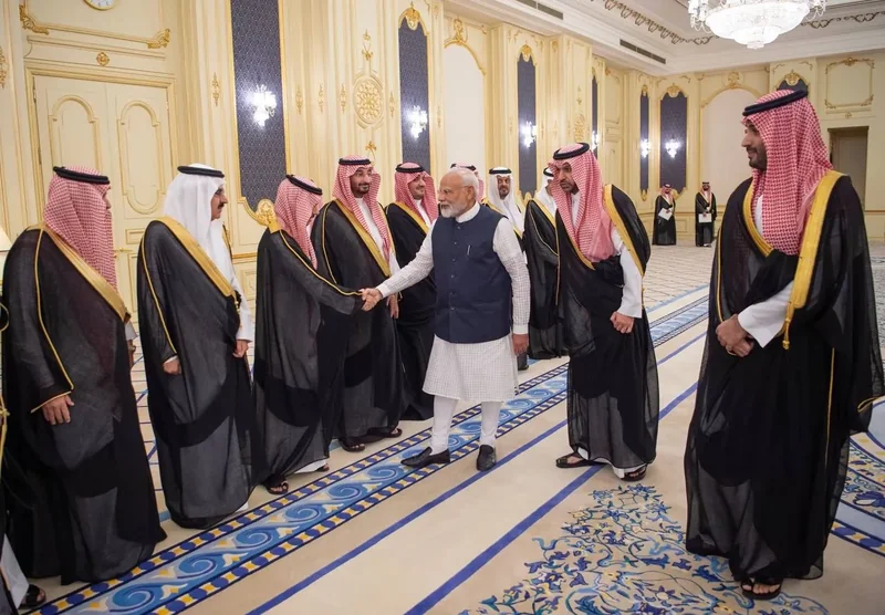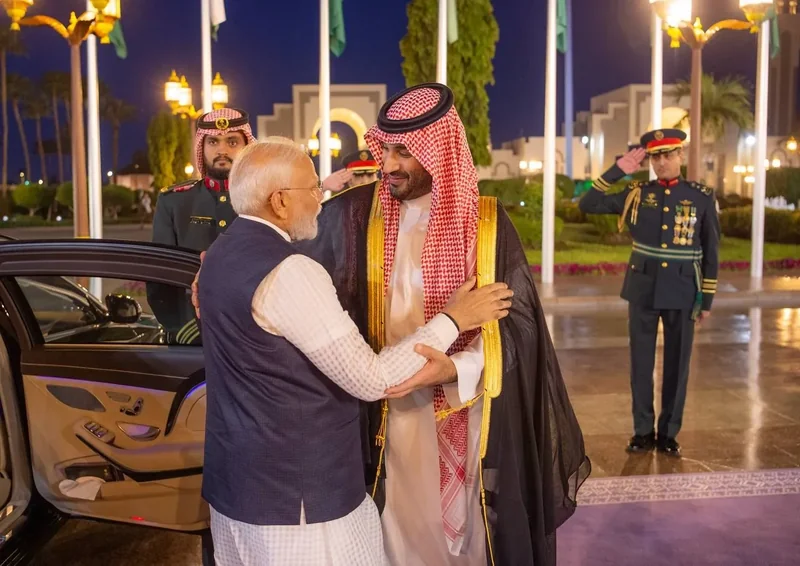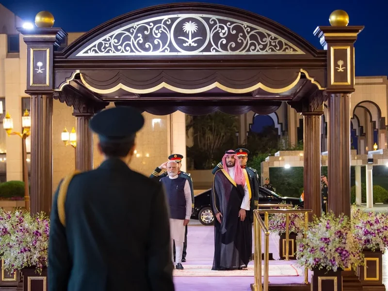HRH the Crown Prince receives at the Royal Court Al-Salam Palace in Jeddah H.E. the Prime Minister of India , and an official reception was held.