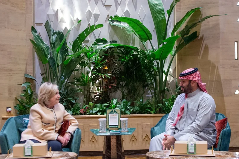 HRH the Crown Prince receives former U.S. Secretary of State Hillary Clinton.